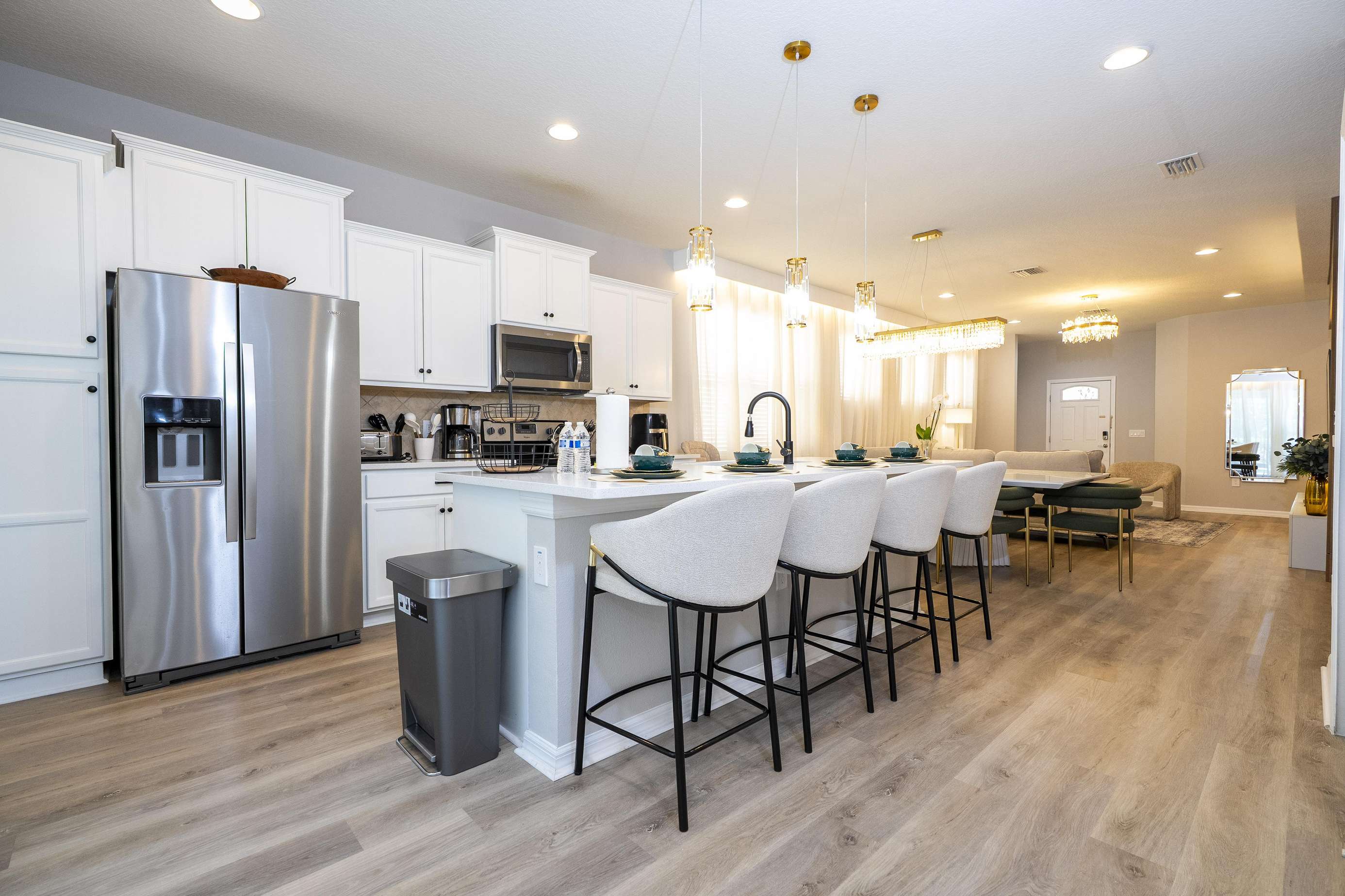 As per Florida law, we are not allowed to leave open food in the refrigerators or kitchen closets, hence, all food items will be removed after the guest checks out and no supply of items such as condiments, coffee, cooking oil will be provided prior to check in.